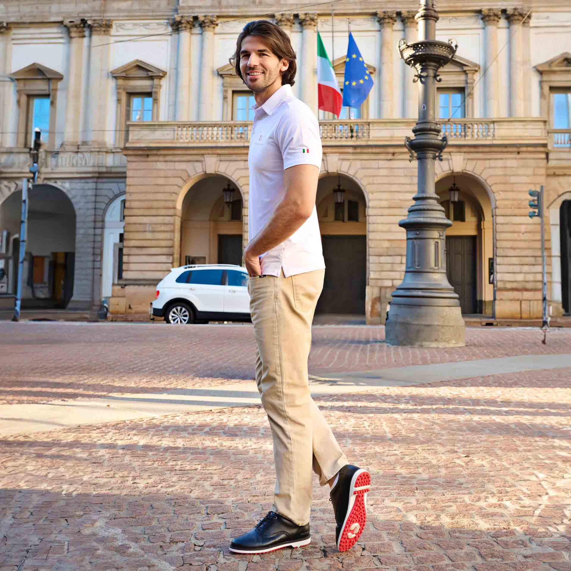 Meticulously crafted Churchill men's black golf shoes – a fusion of timeless style and peak performance. The premium quality Italian Nappa leather exudes sophistication, while the ARNEFLEX® memory foam insert sole with recycled cork provides unmatched comfort. Crafted for serious golfers.
